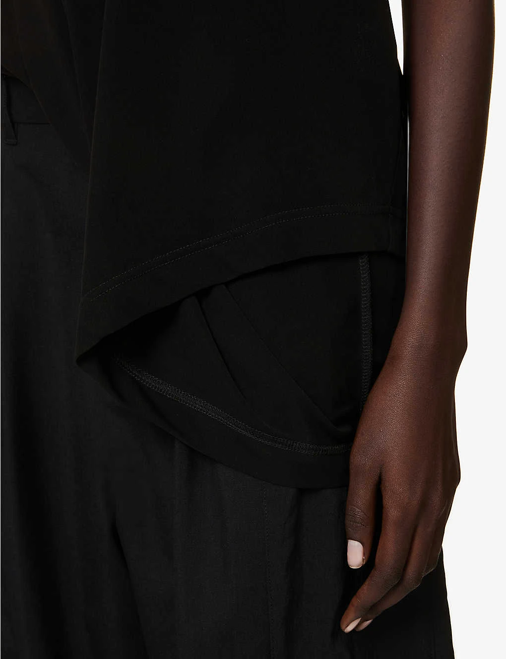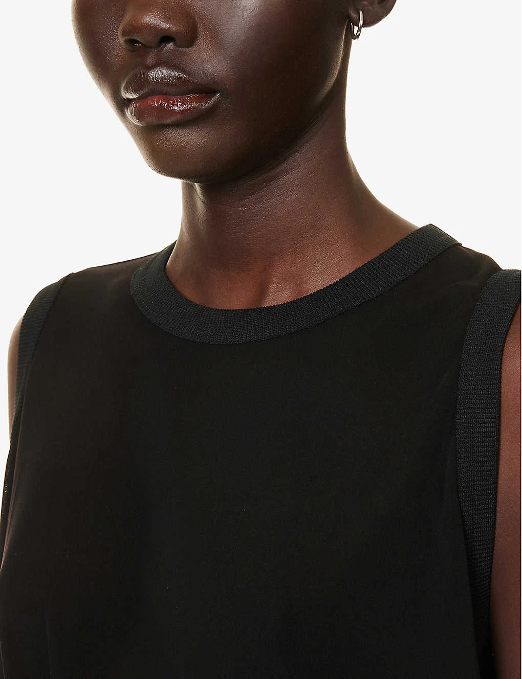 - Relaxed fit, round neck, sleeveless, dropped armholes, ribbed trims, asymmetric hem