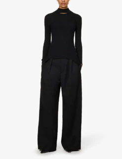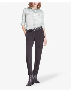 - Regular-fit, high-waist, wrap-over panel at front, gold-toned eyelet at front, hook-and-loop tape at front