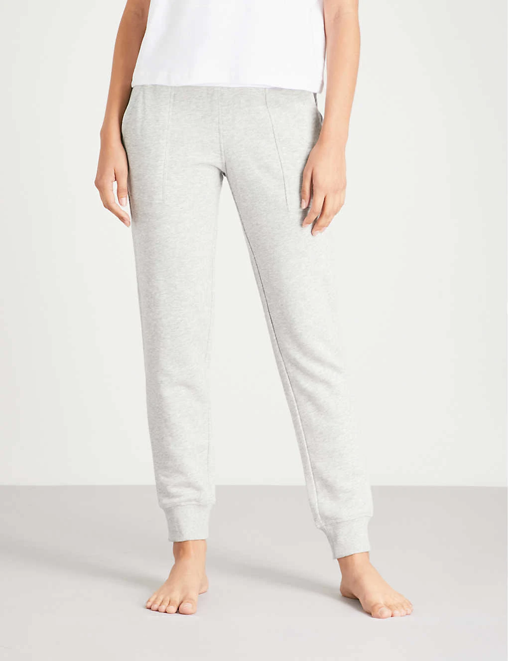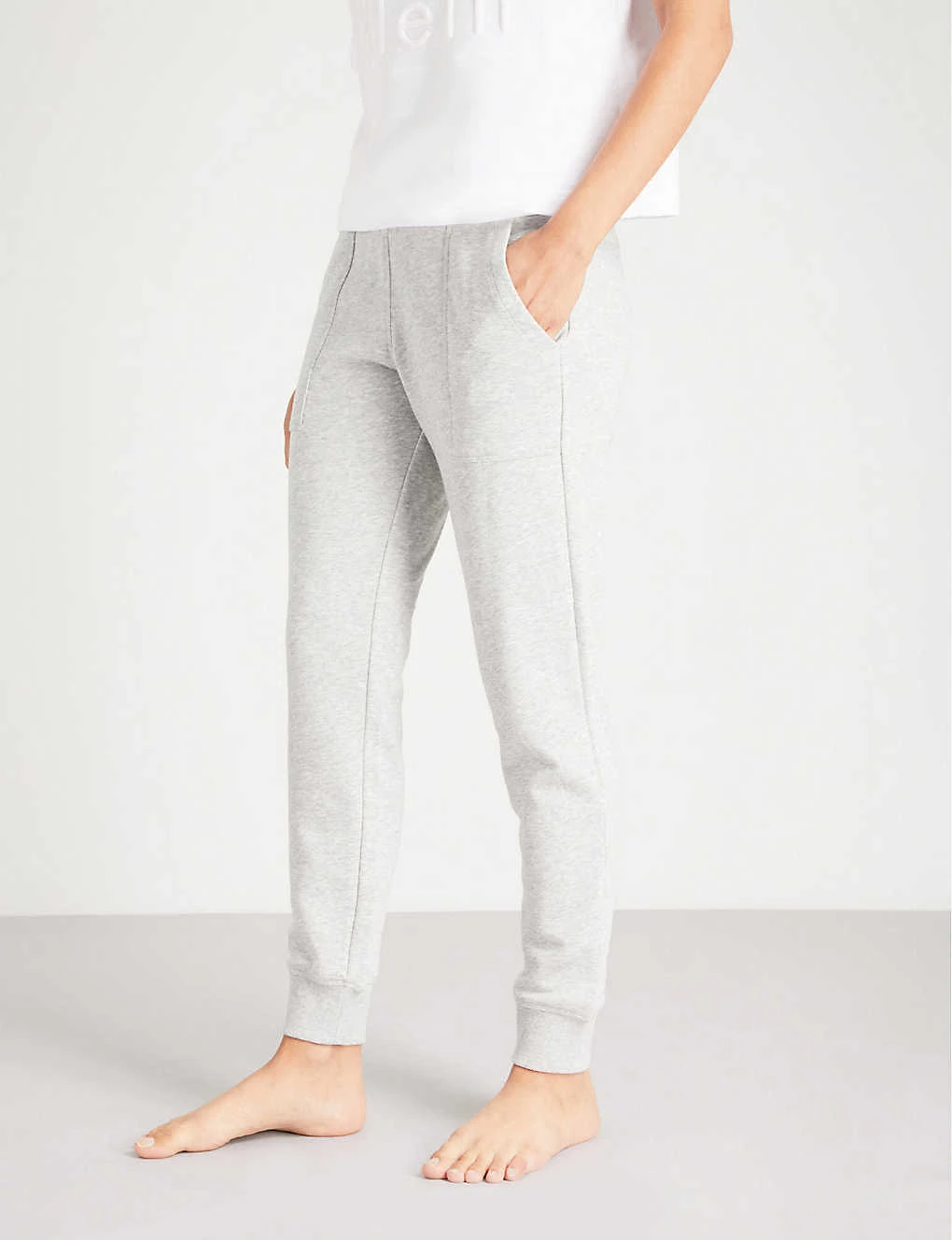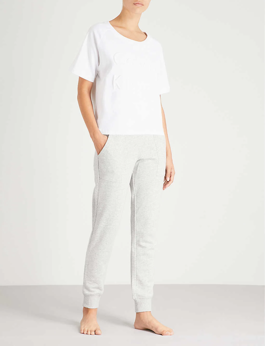 Calvin Klein cotton-jersey jogging bottoms Slips on Relaxed-fit, mid-rise, branded elasticated waistband, slip pockets at front, stitched seams, back yoke, ribbed elasticated cuffs 91% cotton, 9% polyester Machine wash True to size Size small: Rise 10″”, inside leg 26″”, leg opening 10″” Model is 5ft 10″” and wears a size small