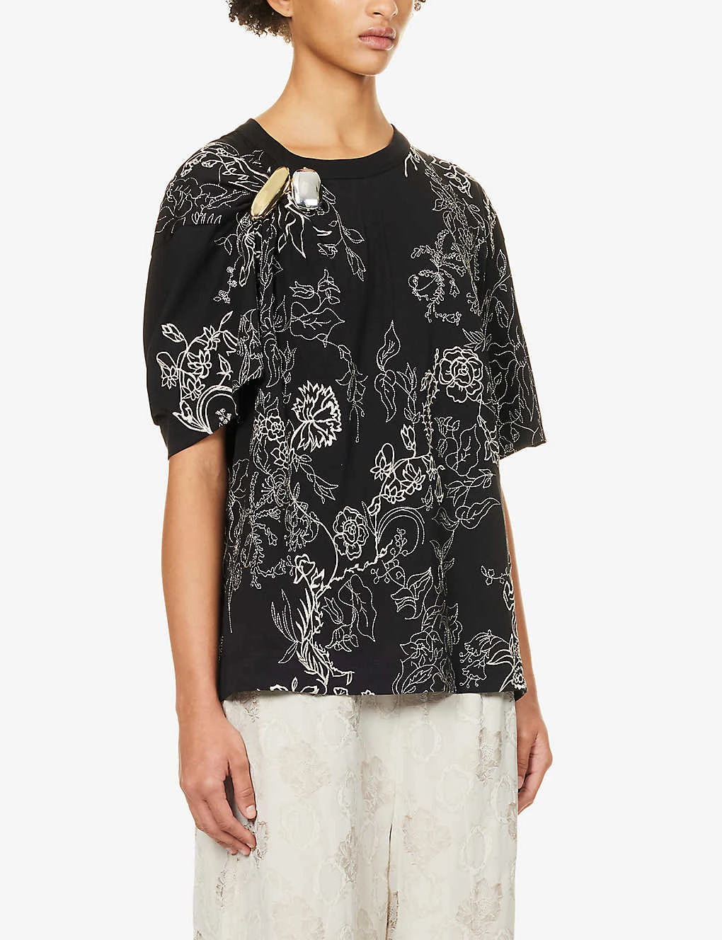 Be the first to review “Dries Van Noten Brooch-embellished Floral-print Cotton T-shirt” Cancel reply