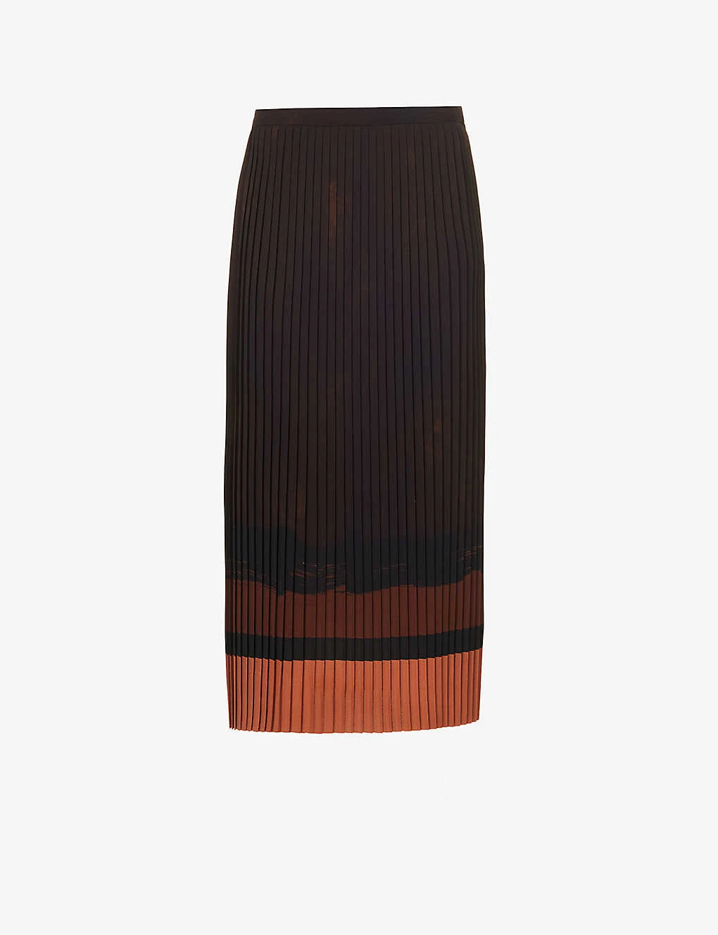 - Regular fit, mid-rise, structured waistband, abstract colour block pattern, pleated flared hem