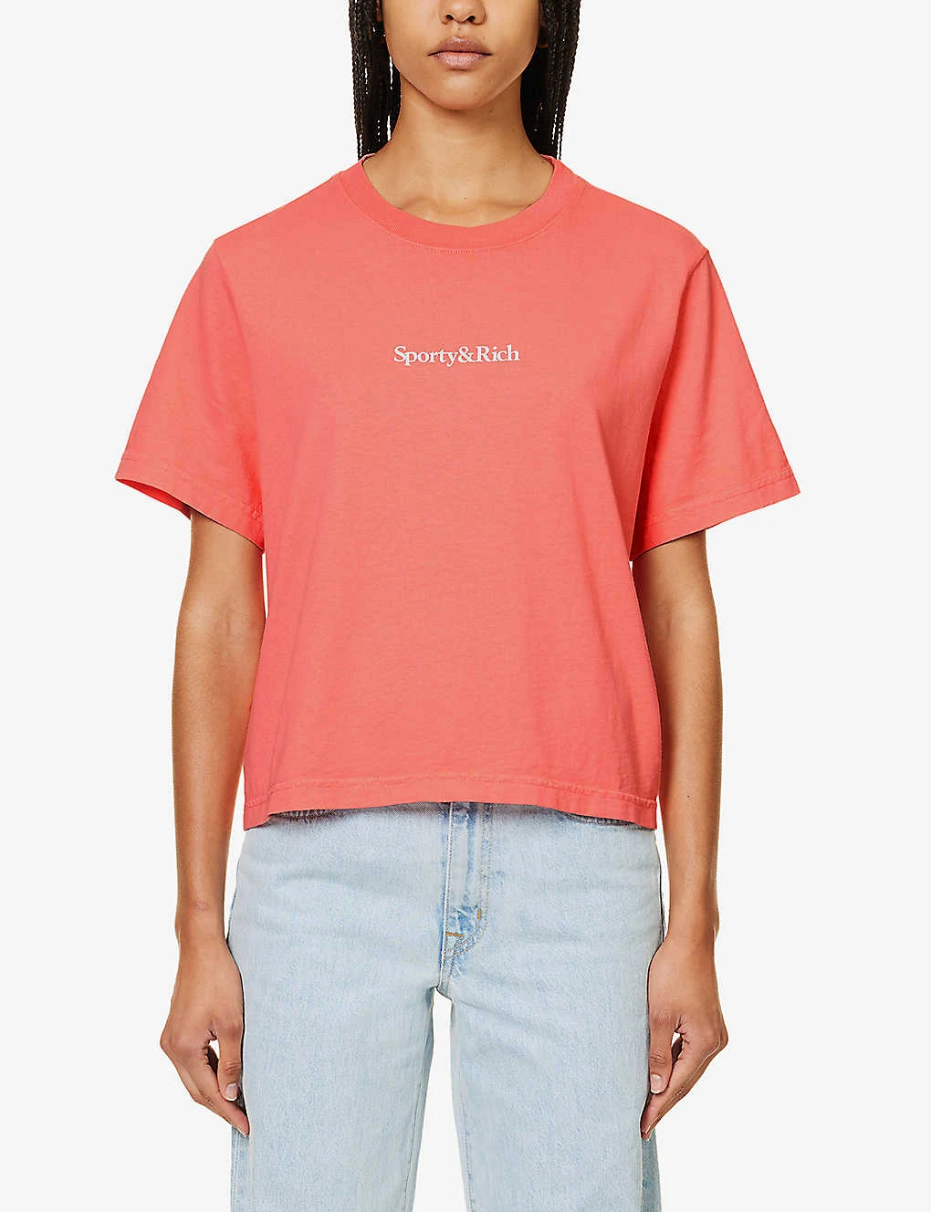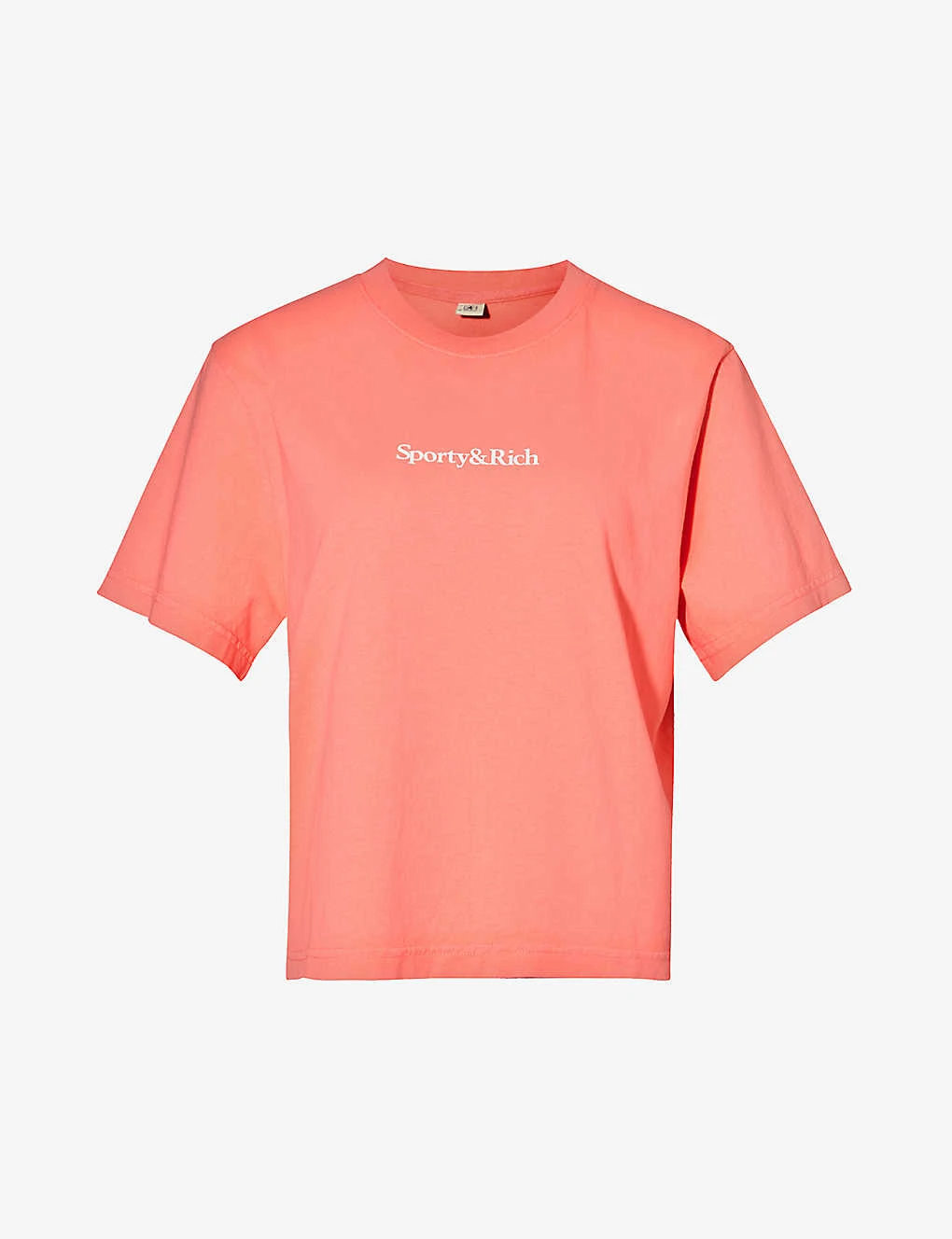 - Regular fit, round neck, ribbed trim at neck, short sleeves, brand print at chest