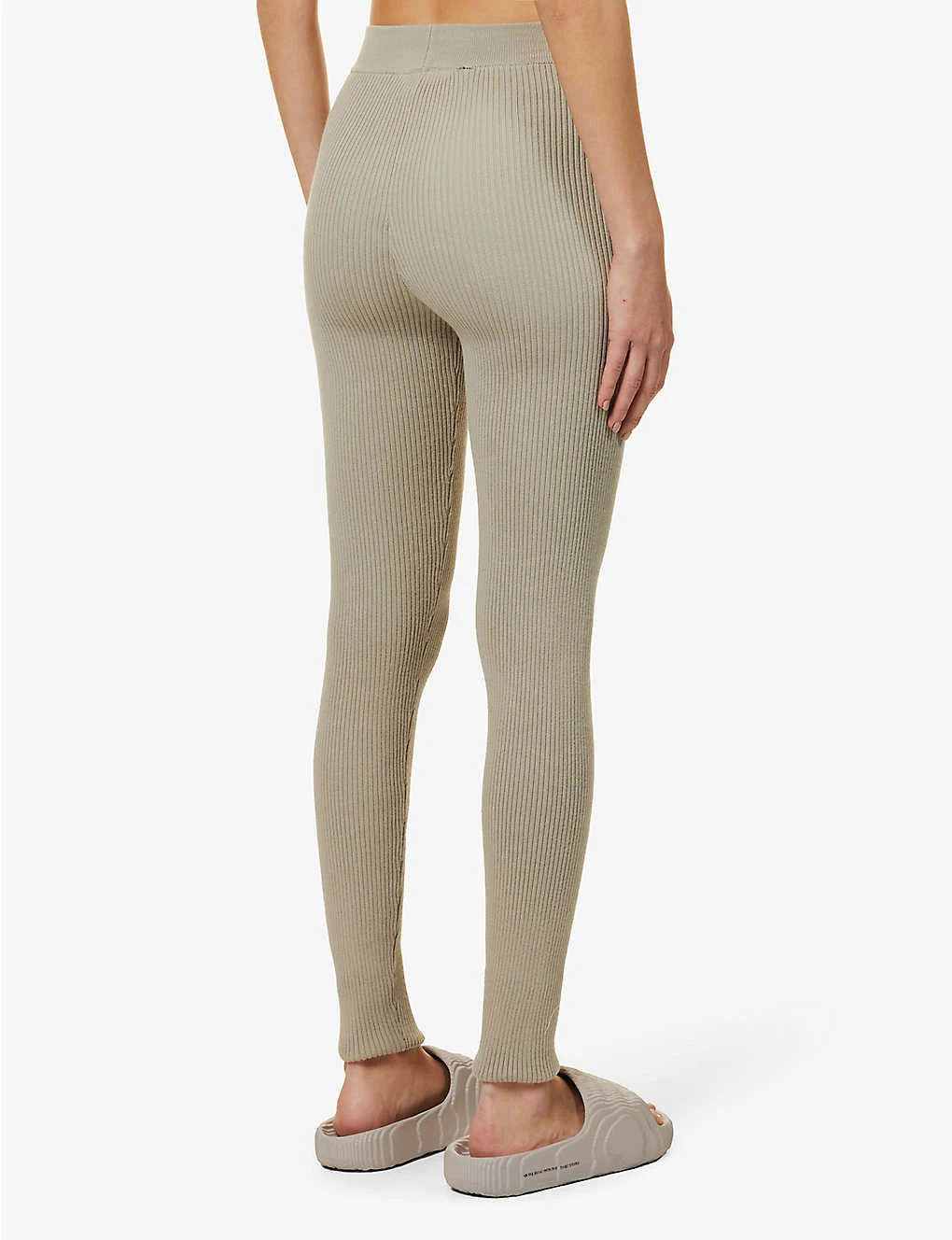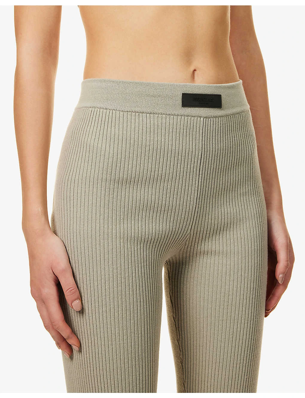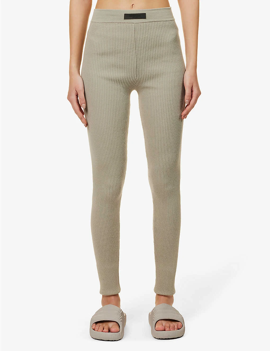 - Slim-fit, high-rise, straight leg, elasticated waistband, rubberised brand badge at front, all-over ribbed texture, ribbed trims