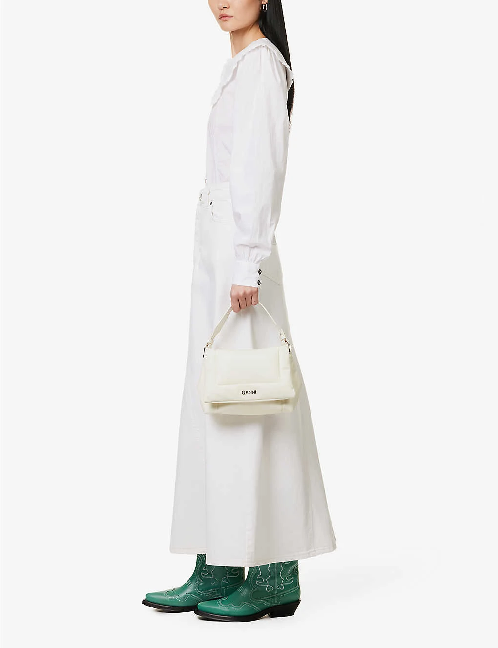 Be the first to review “Ganni Mid-rise Logo-appliqué Organic-denim Maxi Skirt” Cancel reply