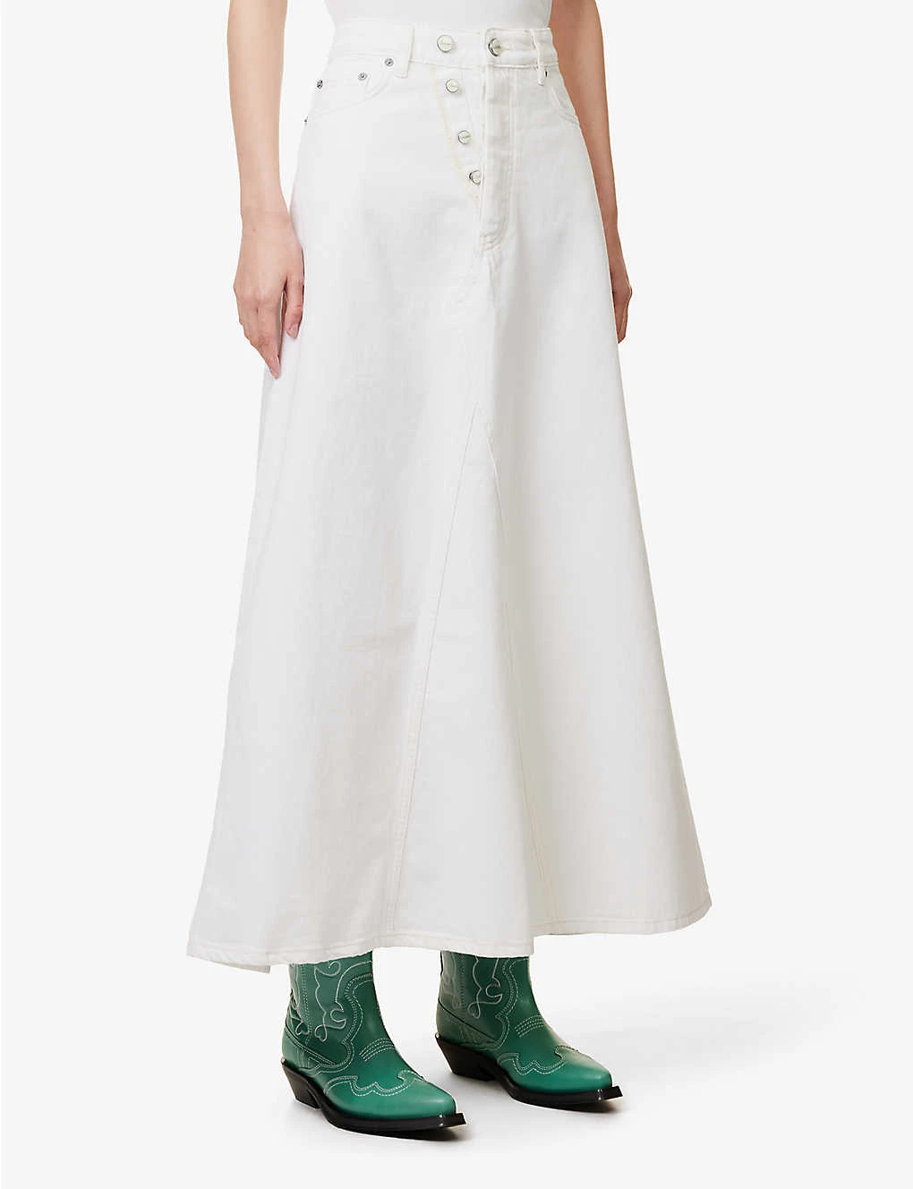 - GANNI organic denim maxi skirt
