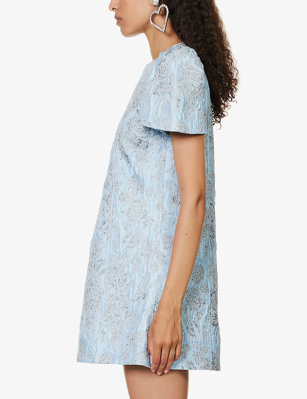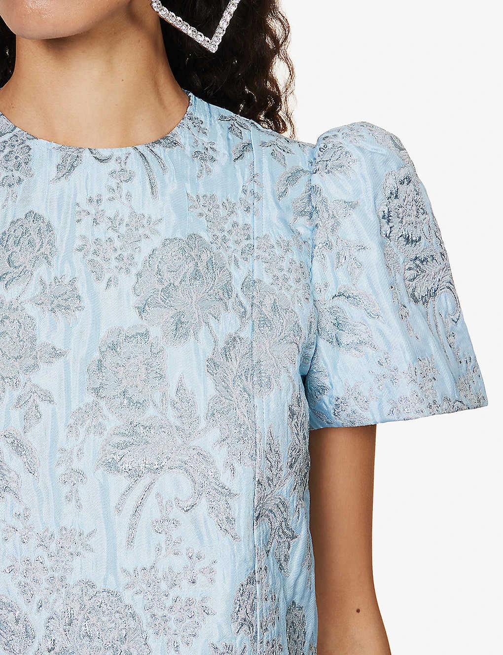 - Regular fit, round neckline, short sleeves, panelled jacquard pattern, metallic thread weave, A-line silhouette, fully lined