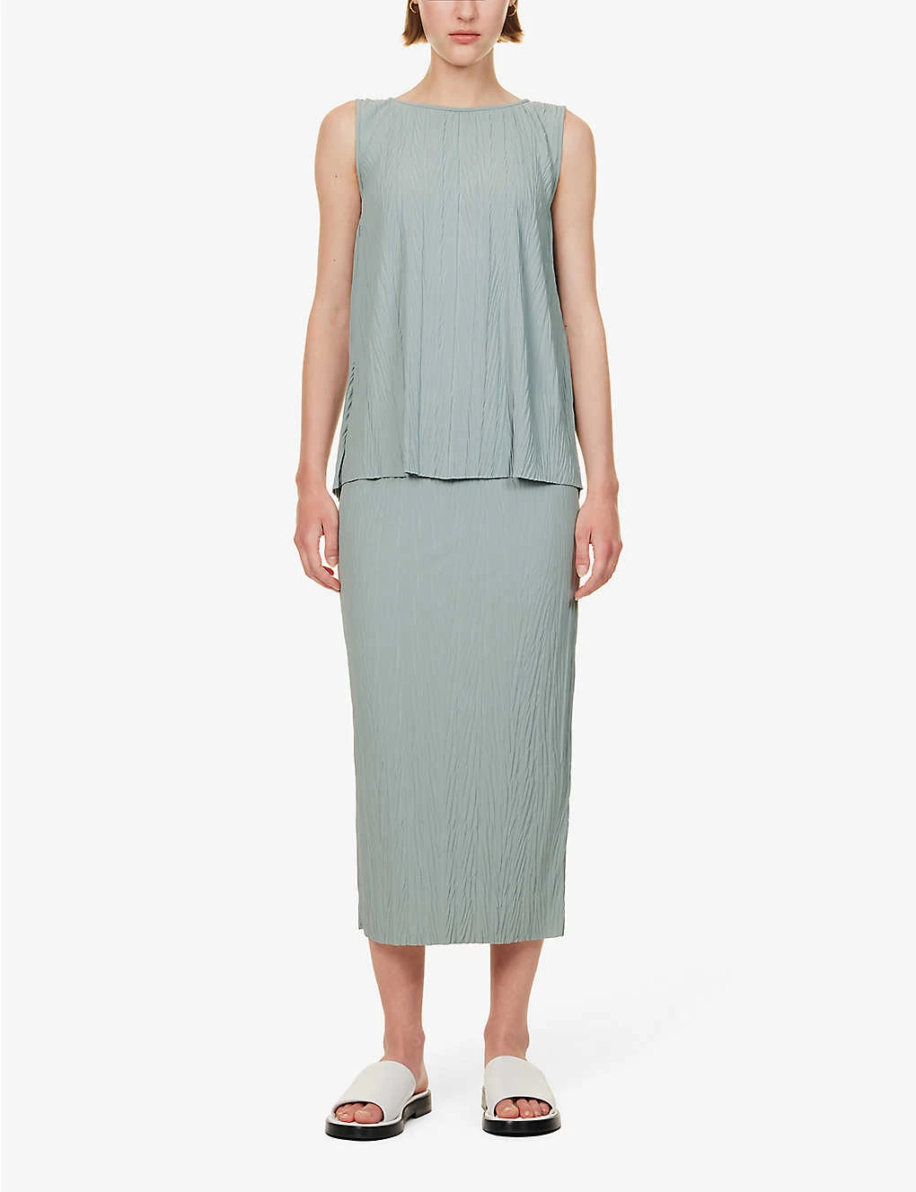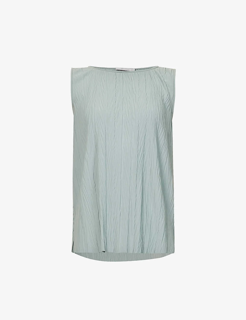 - Relaxed fit, round neckline, sleeveless, all-over textured crease pattern, dipped hem