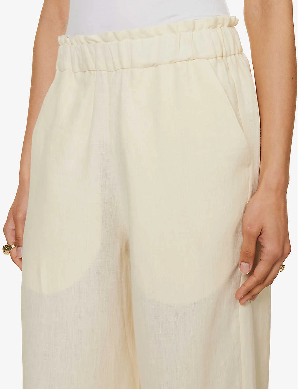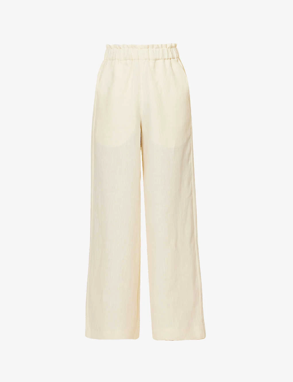 - Regular fit, high rise, straight leg, elasticated waistband, frilled trim at waist, two slip pockets at front