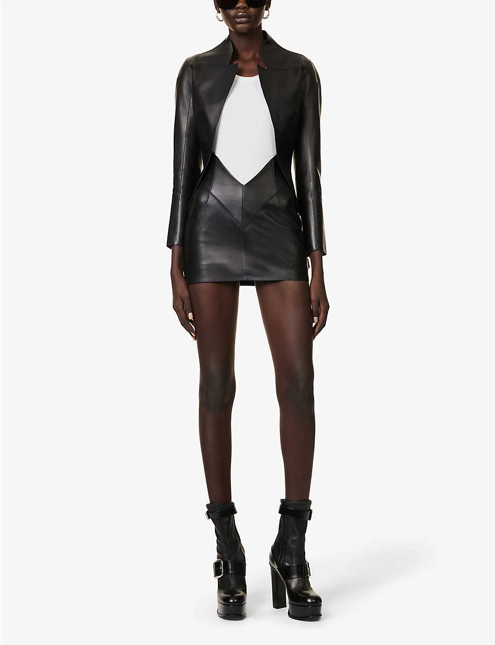 Be the first to review “Obsidian-embellished High-waist Leather Mini Skirt” Cancel reply