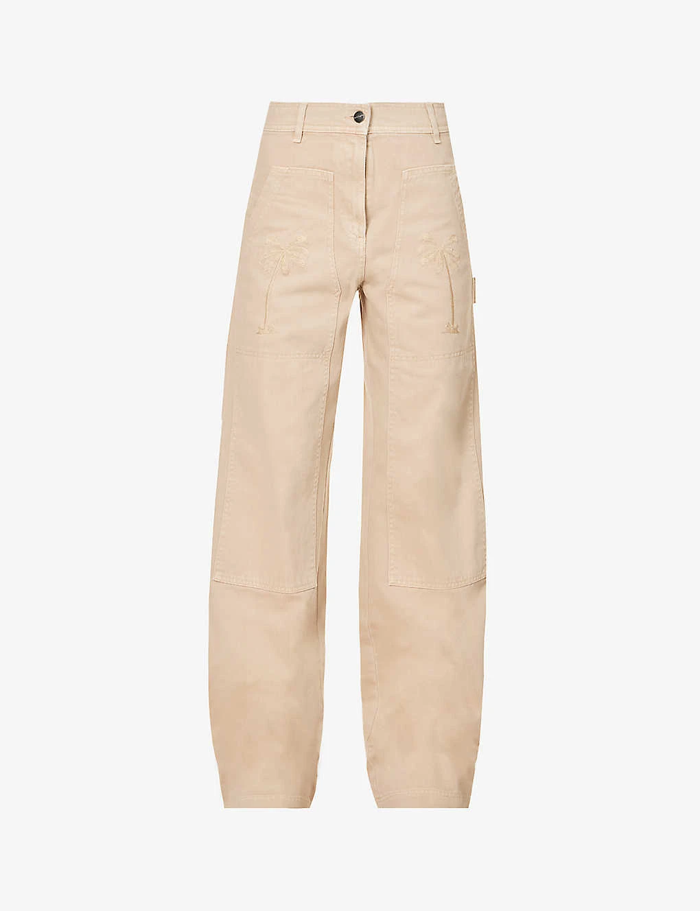 Be the first to review “Palm Angels Bull Brand-patch Wide-leg Mid-rise Cotton Trousers” Cancel reply