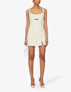 SELF PORTRAIT Diamante-embellished Bouclé-texture Woven Mini Dress