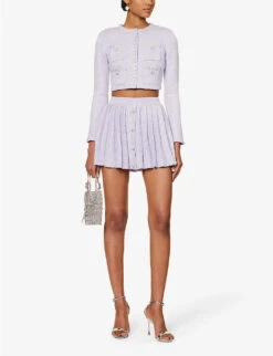 SELF PORTRAIT Sequin-embellished Mid-rise Wool And Cotton-blend Knitted Mini Skirt