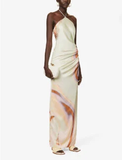 Simone Cut-out Halterneck Low-back Linen-blend Dress