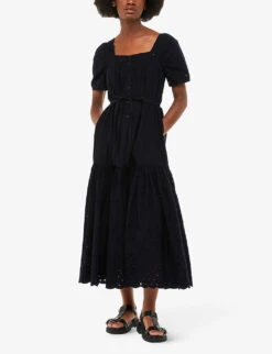 Whistles Broderie Puff-sleeve Relaxed-fit Stretch-cotton Top