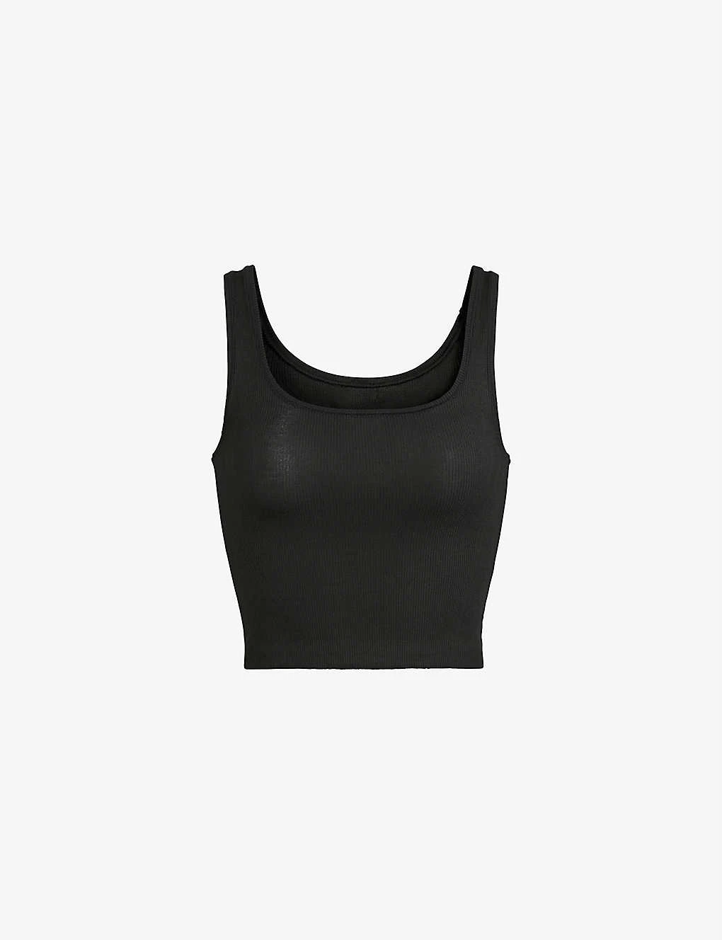 - Scoop neck, shoulder straps, cropped, all-over ribbed texture, scoop back
