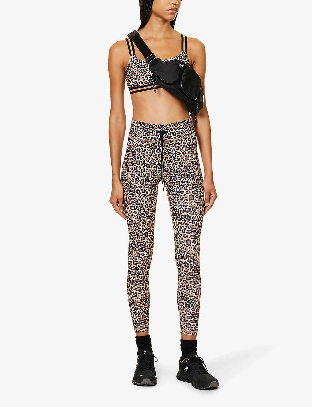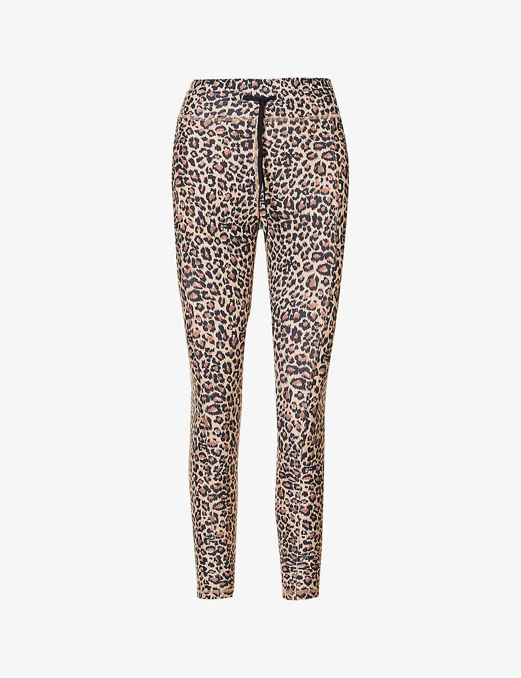 - Slim fit, high-rise, tapered leg, drawstring elasticated waistband, brand print at back, exposed stitching, all over leopard print, straight cuffs