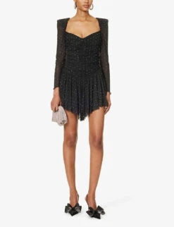 ROTATE Birger Christensen Crystal-embellished Brand-charm Recycled-stretch Polyester Mini Dress