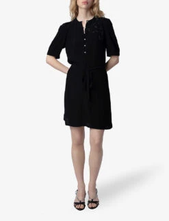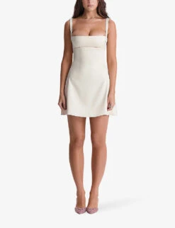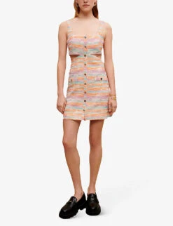 - Regular-fit, V-neck, sleeveless, all-over brushed texture, contrast piping, A-line skirt, ribbed trims