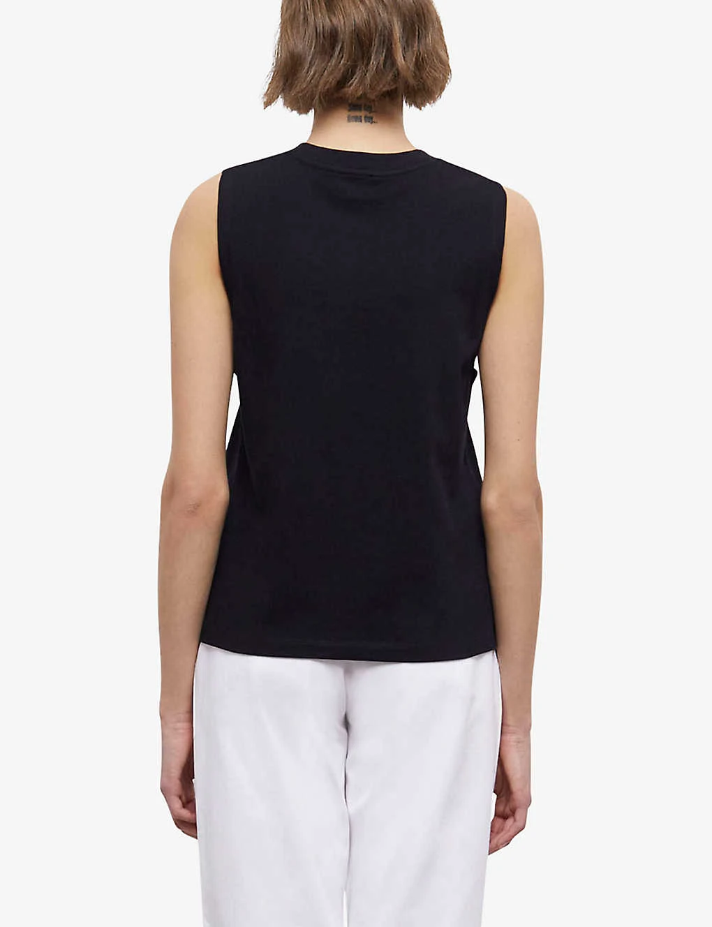 - Round neck, sleeveless, logo print on front, ribbed trims
