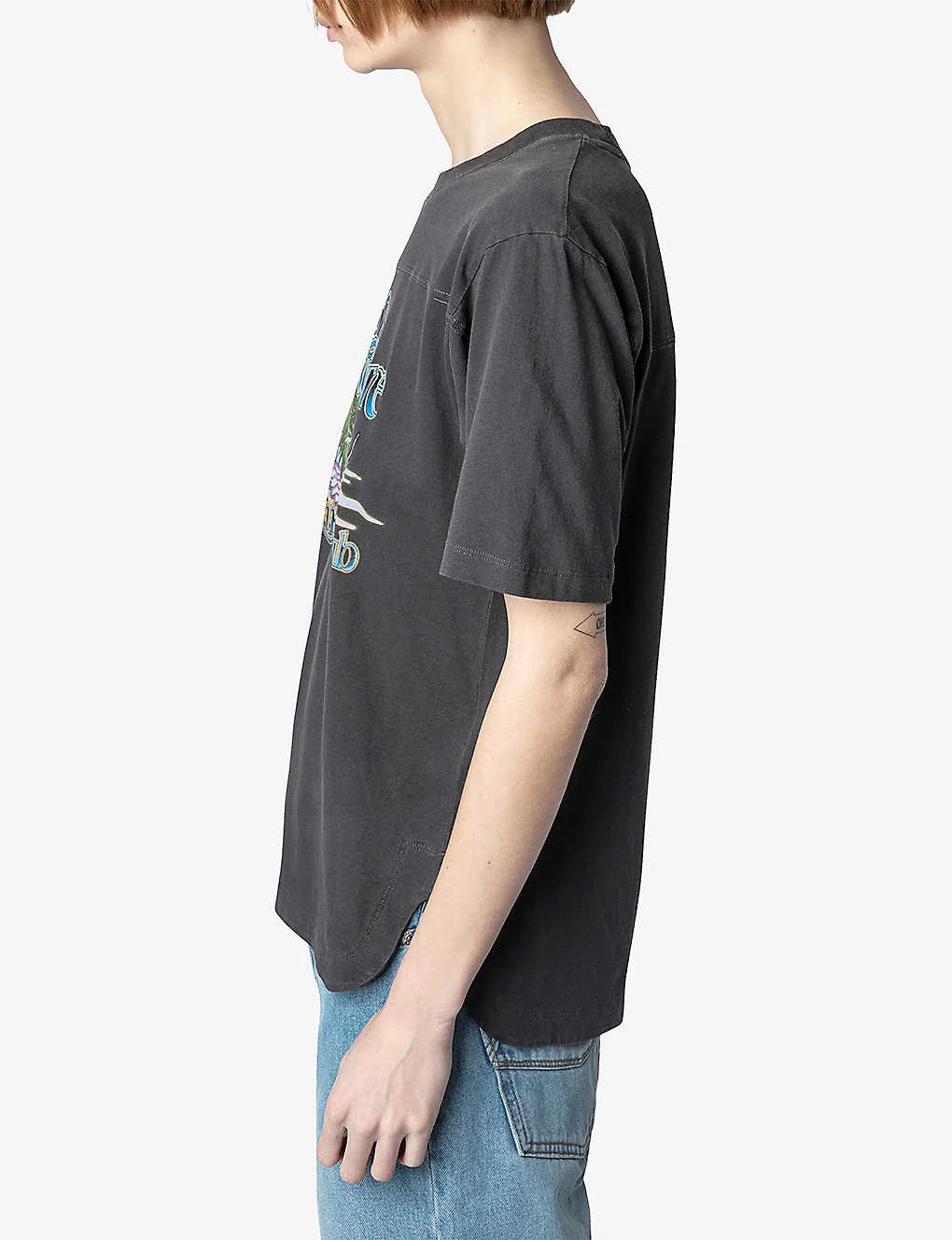 - Relaxed fit, round neck, short sleeves, graphic print at front, all-over top stitching
